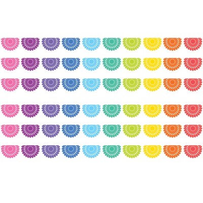 - FUN AND FESTIVE DESIGN – This border's rainbow of colorful pom-poms (pink, orange, red, turquoise, yellow, blue, and purple) on a black background will brighten any room.