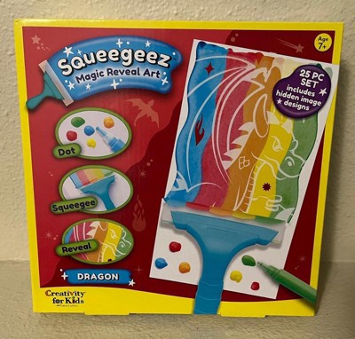 Creativity for Kids 25pc Dragon Squeegeez Magic Reveal Art Kit: DIY Craft Activity for Ages 7+, Includes Stickers & Paint
