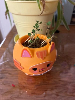 [This review was collected as part of a promotion.] This has got to be the cutest little plant I have ever seen. My son's cat is orange with a purple collar, so this is the perfect fit for him. He really enjoyed putting the soil, then the seeds, and watering it daily. We did expect it to grow alot faster than it did, but almost 1.5 weeks later we finally were seeing some sprouts. I would definitely purchase this again for my child and a gift for others.