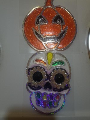 [This review was collected as part of a promotion.] My seven year old was so excited when I got these, we had to make them right away! I will say it is important to use caution and not overflow your first few because you will run out of paint for all of them. We didn't get the pumpkin done because my daughter really filled the others.... It is so easy to do, and I love how the paint dries to a transparent color with sparkles in it!! Some of the thicker painted decals had to be dried out a bit longer after removing from the celefane.