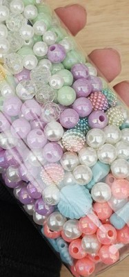 [This review was collected as part of a promotion.] This is a nice set of beads of different colors and shapes. I like that the beads have big holes, which is perfect for making jewelry with kids. They come in a jar which is convenient for storing, but for using, there is another tray needed.