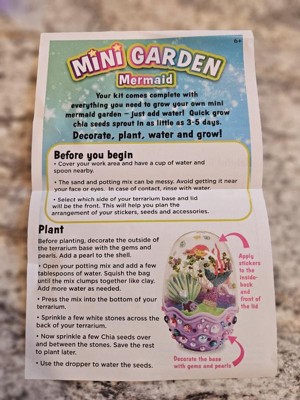 [This review was collected as part of a promotion.] This is super cute and comes as a complete kit. It has more seeds in it than I expected, which was a pleasant surprise! My 6 years old enjoyed designing her own little mermaid garden, and it's been a great teaching tool to talk about the ecosystem.