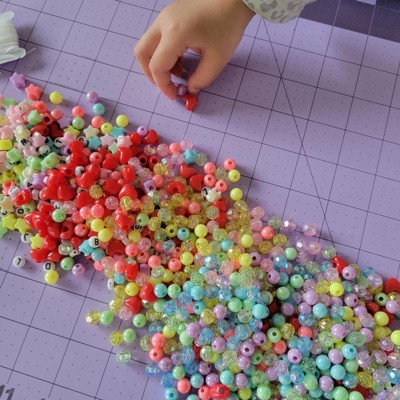 [This review was collected as part of a promotion.] This set is a sturdy plastic jar filled with bright beads in a nice variety of colors, shapes, and sizes. There are iridescent circular beads in pink, white, blue, and purple. There are also snazzy textured beads, shell-shaped ones, translucent mermaid tails, and letter beads. It's a great gift for kids or teens who enjoy making jewelry and other crafts great value.