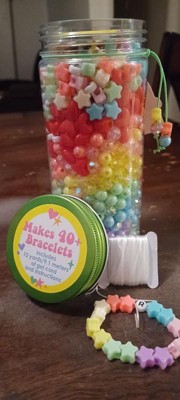 [This review was collected as part of a promotion.] Fun activity for kids, can make bracelets, necklaces, keychains etc! Hours of entertainment in one little jar. Comes with gel cord along with the beads so it’s a complete set, everything needed is in the jar. Cutest color mixture and theme. We love this.