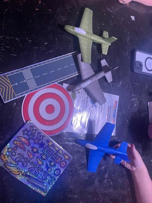 - The complete kit includes everything you need: 3 durable foam planes, shiny foil stickers for standout designs, a pop-out launch pad, and a target for added playtime fun