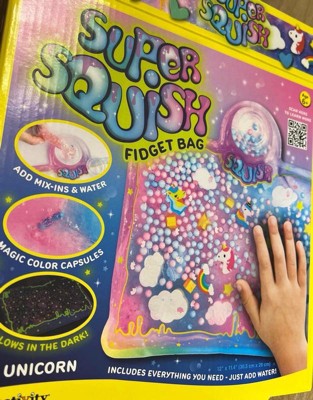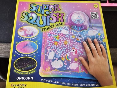 - Squish your way into a world of fun with the Creativity for Kids Super Squish Fidget Bag Unicorn!