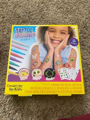 Unleash your creativity with the Creativity for Kids Tattoo Designer Studio! This fun and vibrant DIY craft kit lets kids design their own temporary tattoos with colorful body markers and over 50 unique tattoo designs. The kit includes everything needed to get started: 8 cosmetic-grade tattoo markers in bold shades like metallic silver, pink, blue, red, yellow, green, purple, and black, plus an assortment of tattoo designs featuring color-in, neon glow, and holographic options. Add a personal touch by creating custom body art that’s uniquely yours! Quick-dry, skin-safe markers make it easy to apply and remove your creations, allowing kids to experiment with fun, imaginative designs on arms, legs, or even faces. Whether it’s for Halloween costumes, a slumber party, or everyday fun, this kit provides hours of creativity and self-expression. Perfect for solo crafting or group play, kids can mix and match designs to fit their mood or theme. Easy to wash off with soap and water, the markers offer mess-free fun, making them ideal for kids activities, parties, and birthday gifts. The Tattoo Designer Studio makes a fantastic gift for birthdays, holidays, or any special occasion. It’s a creative and exciting way to inspire young artists and encourage imaginative play. Since 1976, Creativity for Kids has proudly crafted DIY kits that nurture confidence and creativity, making this tattoo kit a must-have for kids who love arts and crafts. Recommended for ages 6-8+