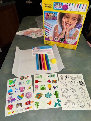 [This review was collected as part of a promotion.] Hello, friends & family. .I just wanted to let you know about Tattoo Designer Studio by Faber Castell. This was so much fun to play with the girls. We had fun laughing, giggling & making all sorts of weird tattoos. Having fun putting the tattoos on family and backpacks, too. They stay in place. Has 50 designs along with markers. They are temporary, so they do come off right away. No mess. I really like that.. It gives them good creativity and imagination. Please make sure you read all directions. Highly recommend.