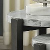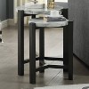 Faux marble reinforces the elegant look of this modern nesting table set. Featuring one large and one small table, this set is ideal for compact spaces, offering flexibility for daily living and entertaining. Each table boasts clean lines and a brushed brown gray wood finish. Wishbone-style braces complement tripod legs while a round tabletop add space for everything from a table lamp to a vase of flowers to a midnight snack.