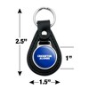 - QUALITY MATERIAL: Our durable round keychain is crafted from leather with a glossy resin-topped emblem featured design shown on one side. Approximately 1.5" (3.8cm) x 2.5" (6.4cm) in overall size, emblem is 1" (2.5cm)..