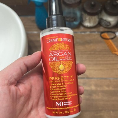 Cream of nature argan oil from Morocco perfect 7 has seven ingredients to help your hair stay strong and healthy. Leave this spray in and do not wash it out