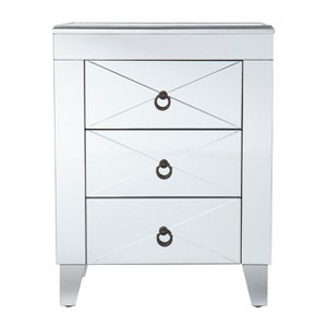 Keep stylish storage by your side with this mirrored end table. Three spacious drawers hold the TV remote and your favorite book, while the mirrored tabletop displays a functional reading lamp or simple vase of flowers. Truly small space friendly, this storage side table fits neatly alongside your living room sofa or next to an entryway bench. Create a multifunctional space that fits your needs when you bring home this mirrored accent table with storage.