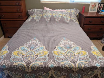 Cressley Paisley Quilt Set - Twin/Twin XL Quilt and One Standard Pillow Sham Grey, Yellow - Levtex Home