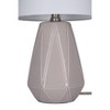 - Simple Elegance: An oblong grey ceramic body and white linen tapered drum shade make this accent lamp a neutral décor piece for any style