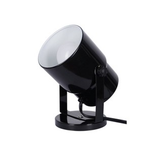 Add brightness to your space with the Black Metal Spotlight Accent Lamp. This classic black metal spotlight features a glossy finish, and a pivoting adjustable shade, in order to allow you to direct the light wherever you most need it. It measures 7.5" tall when fully assembled. This lamp features a simple in-line on/off switch on the cord. It also is extremely versatile, and can be used as an accent light, a spotlight, or as upward ambient lighting if positioned on its standing base. It also features a built-in keyhole wall mount for seamless installation. Whether you're looking to illuminate a gallery of family photos, add a little extra light to your home office, add some light to a darker corner (such as behind a piece of furniture), or brighten up anywhere else, this versatile piece will provide just the directional lighting you're looking for.