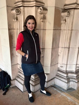 [This review was collected as part of a promotion.] This is such a cool vest, it’s going to keep you warm. It has four heat zones, two on the upper chest area, one on the left, one on the right, one on the lower back, and one towards the upper back area. I would have liked one heat zone on the waist, or lower waist area. The outer shell is water resistant. There is no hood, but I would have liked one. It came with a 7.4V LI-ION battery bank, that connects to the vest to heat it. You can download the app, to control your heat setting right from your phone. The power bank, not only heats your vest, it has a flashlight, that is bright, plus can also charge your phone! The battery life is great, on this power bank. Back to the vest, it is stylish for sure. The zippers have been super smooth when opening, and closing. I love that all the pockets have zippers. There is an internal pocket. It’s big enough for my phone, or some cash, and keys. No worries, it has a zipper to keep everything safe. You can most definitely use the vest without, the power bank to heat it. Now that it’s colder though, I have been grabbing the power bank on my way out the door. I sized up on the vest, to layer over sweaters. I am normally a size small. The top is perfect with some room to layer. I like the style of the vest a lot, I just don’t like that it’s a bit long on me. I am short, so I like the vest to be a shorter length. I’m still using the vest, that’s just a preference for me. The vest gets so cozy, and warm I start to sweat! I can easily access the settings from the app, to turn the heat down from my phone, or press the control on the vest itself. Sometimes it’s so cozy, and warm that I keep it on even when I get home. I’ll start to relax in a chair, still with the vest on. I start dozing off, because it’s so cozy warm haha! Really nice quality vest, it’s lightweight, and not too bulky.