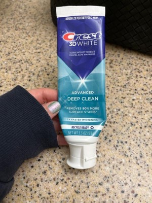 Brighten your smile with Crest 3DWhite Advanced Deep Clean Whitening Toothpaste. This Crest toothpaste removes 90% more surface stains*, protects against future stains, and gives you whiter teeth in 5 days. This 3DWhite toothpaste also strengthens your tooth enamel and helps protect teeth against cavities. It leaves your smile with a bright and minty-fresh feeling. From America's #1 Whitening Brand**
