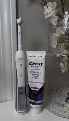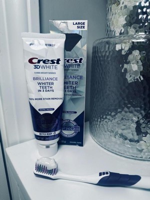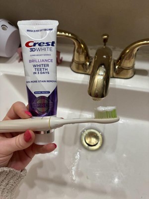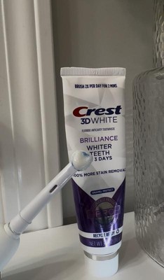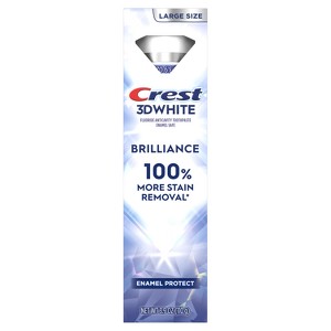 Crest 3D White Brilliance 100% More Stain Removal Enamel Protect Toothpaste contains clinically proven whitening ingredients for whiter teeth that is enamel safe. Bring your brightest smile forward with Crest 3D White Brilliance 24-hr active stain prevention when brushing twice a day. This formula removes 100% more surface stains than regular toothpaste. From America's #1 Whitening Brand.* *P&G calculation based on U.S. reported sales data for the year ending w/o 1/05/25.