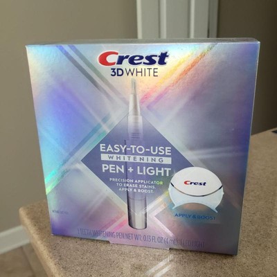 [This review was collected as part of a promotion.] I received the crest 3D white easy to use application whitening pen & light applicator free in return for my honest. I find product to be easy to use, non irritating to gums and some whitening when used for some time as stated.
