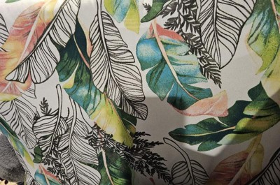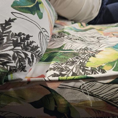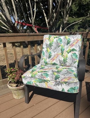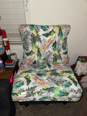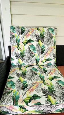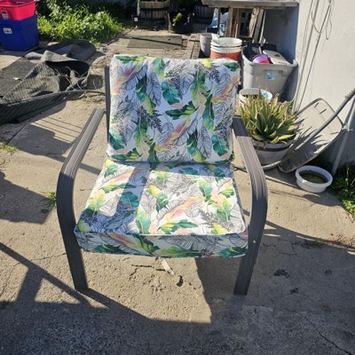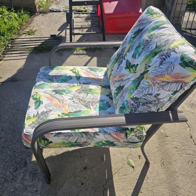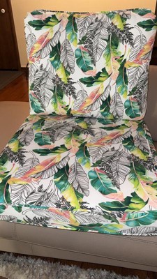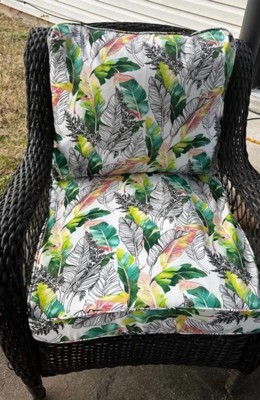 [This review was collected as part of a promotion.] This is a pretty nice outdoor cushion. There are two pieces for the cushion behind your back and the bottom cushion. The pattern is on the summery, tropical side. Colorful and unique. The material is not too soft but it feels durable and comfortable. It’s not heavy at all. Putting them together was super easy. The only things I didn’t like was that when I went to cute open the packaging, it cut a hole into the material in the cushion before I put the covering over, and I thought there was be two cushions from the description. It suck’s they only sent one?! Why?! Just one random seat cover? I don’t see the point in that?