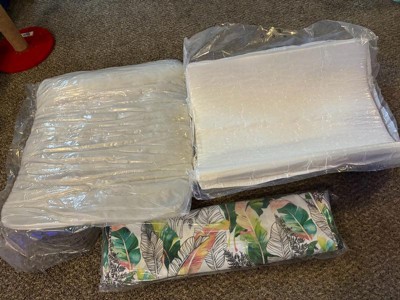 [This review was collected as part of a promotion.] The packaging threw me off, but it was genius and space saving. The actual cushions are a dream and look like they will hold up in stain resistance and a wash. The foam is one full piece so it will be easy to wash and dry without much fluff, literally. The pattern is beautiful and it's very large. I love how thick and firm the cushions are, my family is also jealous and wants a set of their own.