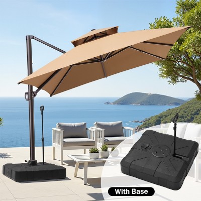 Crestlive Products 11FT Square Double Top Patio Offset Cantilever Umbrella UV30+ Outdoor 360° Rotation 6 Heights Adjustable