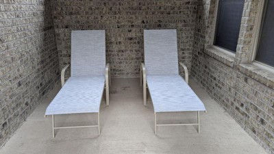 [This review was collected as part of a promotion.] I can't wait to set these up on my pool deck this summer! Tried them out already and love them so much. Very comfy to lay on and the back adjustment is easy to do. The metal frame seems very sturdy and the fabric is strong. They are already stored nicely in our shed until the pool gets opened.
