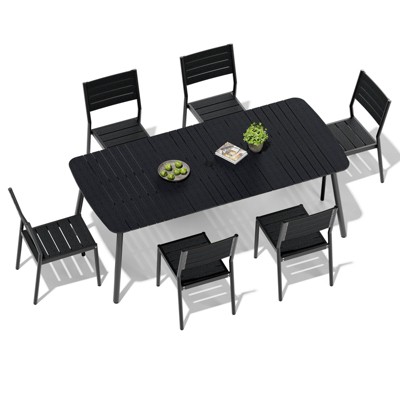 Crestlive Products 9pc Outdoor Dining set for 8 People Patio Rectangle Table Aluminum Frame with Wood-Like Tabletop and Umbrella Hole-240 Black