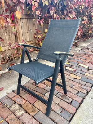 [This review was collected as part of a promotion.] I LOVE these chairs! I haven’t gotten to use them outside yet, but I know I’ll choose these over my other chairs. They’re extremely comfortable and sturdy. The material is somewhat springy, so they feel great to sit in. They recline, which just makes them even more comfortable. They look great with the black fabric and teak wood arms, and they’re very light weight and easy to carry. They are the perfect size for an adult, while still being very portable. Perfect outdoor chair!