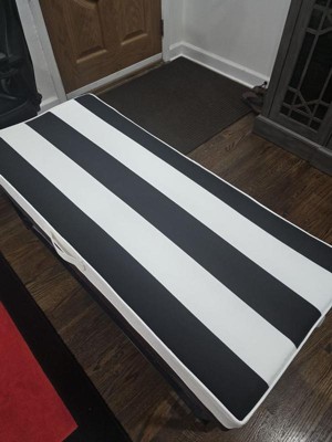 [This review was collected as part of a promotion.] I really like this black & white striped chaise lounge cushion from Crestlive! It looks just as it does in the photo and is comfortable and fairly thick to sit on. It looks chic & has little straps to help secure it to the bench. Assembly was easy and just required taking it out of the box & putting the cushion inside the striped cover which has a zipper closure. I particularly like that it also has a little handle on the side for easy transport. Keeping it as an indoor cushion for now until I find the perfect outdoor bench!