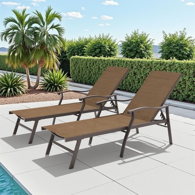 Crestlive Products Outdoor Adjustable Aluminum Chaise Lounge Chairs (Set of 2) for Patio Pool Terrace (Brown)