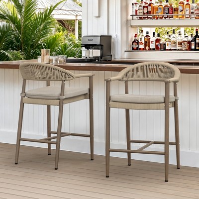 Crestlive Products 30'' Counter Height Set of 2 Swivel Bar Stools Cast Aluminum with Sunbrella Cushion & Curved Armrest Red