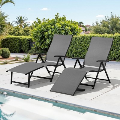 Crestlive Products Outdoor Double Chaise Lounge Chair with Canopy Shade & Wheels, Double Sun Bed Lounger Gray