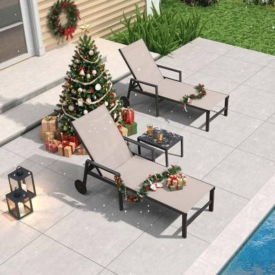 Crestlive Products 2pcs Outdoor Wheel Adjustable Chaise Lounge 5 Reclinig Position Aluminum Sun Lounger