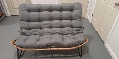 I was super excited when I came across this Loveseat. We had just built an outside firepit area and I was lamenting to my husband that I didn't have a nice comfy seat to snuggle into by the fire. It took about 45 minutes to assemble, and seems sturdy and of decent quality. Sits two people comfortably and i great for a single lounger.
