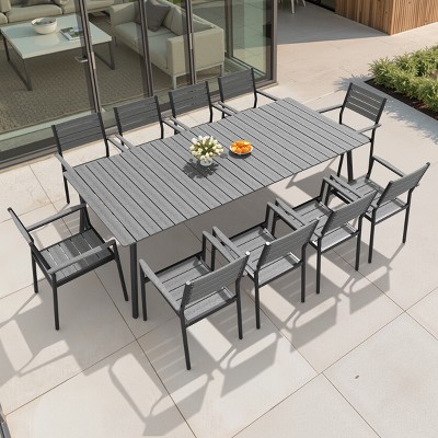 Crestlive Products 7pcs Patio Outdoor Dining Set with Armchairs Rectangle Wooden-Like TableTop & Aluminum Frame & Umbrella Hole