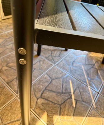 [This review was collected as part of a promotion.] These are such good quality and very easy to put together. I love that they have adjustable feet Wich helps if they are a little wobbly. I like the black wood detail the edges in the arms are a little rough feeling, but that’s my only complaint. (Photo inside due to snow)
