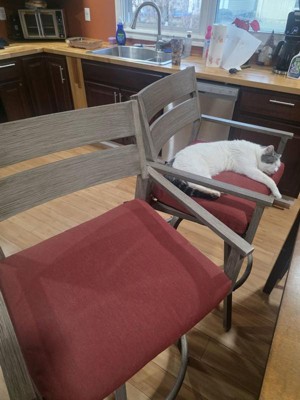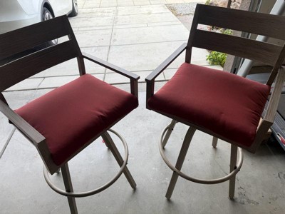 [This review was collected as part of a promotion.] I got these lovely outdoor patio bar stools which i absolutely love. They are very cute and will look great outside once summer gets here. The only thing bad I have to say is i did not get all the screws i needed because the box with the tools in it got spilled out into the box in shipping and so I was missing a couple pieces. Also the holes in one of the chairs didnt quite line up so I wasn't able to place the screws in the round bar at the bottom of one of the chairs correctly and therefore it wasnt assembled correctly. But i got it together and they look great! I can't wait to use them this summer!