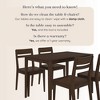 - Sized to Fit: Solid wood dining table measures 43” L x 29.5” W x 30” H; each wooden dining chair measures 20.75” L x 15.75” W x 32.75” H with a seat height of 17.5”.