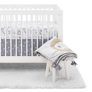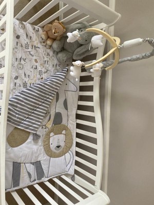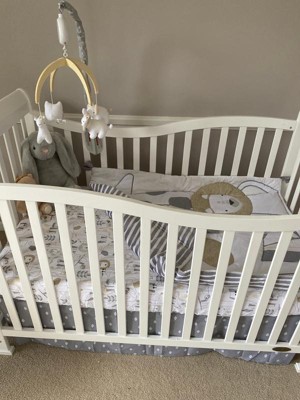 You'll love to complete the look of your little bundle of joy's nursery with the gender neutral design of this Animals Crib Bedding Set from cloud island™. Made with soft fabrics that are gentle against your baby's sensitive skin, this gender neutral crib bedding set includes a comforter, fitted sheet, skirt and changing pad cover that are all designed to fit standard-size crib mattresses. The crib skirt and changing pad cover have simple gray and white geometric patterns, while the comforter and fitted sheet have adorable allover prints of sloths, lions, giraffes, owls and more cute critters. Whether you're in full nesting mode and are putting the finishing touches on your nursery or simply looking to give your little one's room a style refresh, this animal crib bedding set is the perfect combo of functionality and sweet wild-inspired style.
