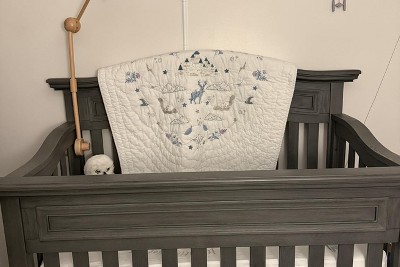 I really liked this crib skirt as a basic option. It worked great for our ethereal Harry Potter nursery bedding from PB (which has been discontinued so I couldn’t get the crib skirt anymore). However, we have some metal hinges to raise and lower the crib, that this was not perfectly cut out for. I wish I could say it was perfect, but it’s as close as we’ll get for the look we’re going for, so we’ll take it.