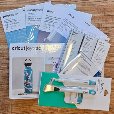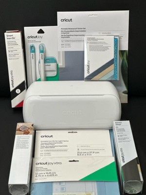 - Bundled wIth: Cricut Joy Xtra Light Grip Mat, 8.5 in x 12 in (21.6 cm x 30.5 cm), Cricut Waterproof Sticker Set, White, 8.5 in x 11 in (21.6 cm x 27.9 cm) (6 ct), Cricut Joy Xtra Smart Iron-On™, Elegance Sampler, 9.5 in x 12 in (24.1 cm x 30.5 cm) (3 ct), Cricut Joy Xtra Smart Vinyl™, Classics Sampler, 9.5 in x 12 in (24.1 cm x 30.5 cm) (3 ct), Cricut Printable Iron-On For Light Fabrics, 8.5 in x 11 in (21.6 cm x 27.9 cm) (5 ct), Cricut Joy Xtra Transfer Tape, 9.5 in x 3 ft (24.1 cm x 0.9 m), Cricut Joy Xtra Card Mat, 4.7 in x 6.6 in (12 cm x 16.8 cm), Cricut Cutaway Cards, Marina Sampler - R20 4.25 in x 5.5 in (10.8 cm x 14 cm) (8 ct), Cricut Joy Starter Tool Set