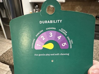 I purchased this online because it was described as for chewers (level 3). What I received was for cuddlers (level 1). See photos. I let my dog have it because she’d already seen it but I’ve already heard the seems starting to rip in under 5 minutes of (not cuddly) play. This was very disappointing - I would have never purchased a toy labeled for cuddlers.