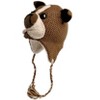 The Crochet Bulldog Hat is hand-crochet with 100% wool and has a soft faux shearling lining.