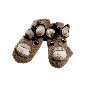 The Crochet Donkey Mittens are as playful as they are warm. Perfect for animal lovers, these mittens feature an adorable donkey face complete with expressive ears and a mane. Hand-crocheted from 100% wool, they offer cozy warmth, while the soft Polyester faux shearling provides an extra layer of comfort and insulation.