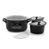 Seal in the rich taste and caramelization of every ingredient by searing and cooking in the same pot. For family-size meals, each 3.7-quart nonstick pots feed 4+ people. Nonstick ceramic-coated pots wipe clean; lid, pots, and steam rack are dishwasher safe. Removable cook pots are oven safe up to 450°F to add a crispy finish to any meal.