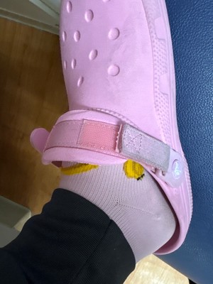 These were so cute, I wanted to love them and did for a couple days until the Velcro kept coming undone on the backs. Maybe a month after I got them one of the backs ripped off while I was flipping it around. Made them completely unusable for their purpose and from the start the Velcro coming undone made them unsafe for work. Sad I had to switch to the other version of work crocs that looked less like crocs.