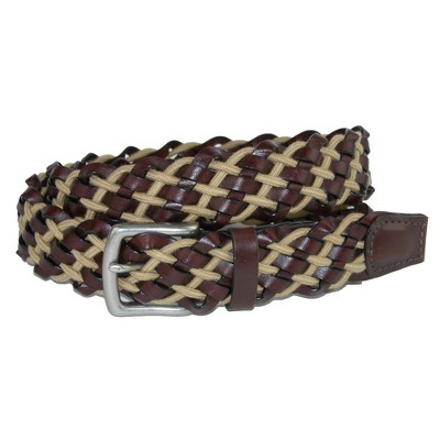 carefully braided nylon is elastic for a comfortable fit that moves with you. Genuine leather trim features alligator embossing and natural vegetable tanned leather lining. The single keeper matches the alligator print tabs. The buckle is solid brass with a satin nickel finish. Handmade in America for enduring quality. Made of Nylon Elastic