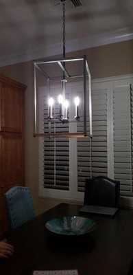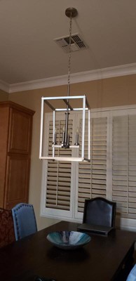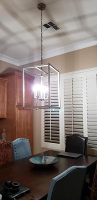 [This review was collected as part of a promotion.] Great looking light, clean and straight lines. Large size with candelabra based bulbs. Placed led lights and really shines bright. Installation was fairly simple, fixture is pretty light but is much easier to install with 2 people. Only issue we had was the pole the wires go through is really small and you may have to pull the wires through with a wire puller. The chain is very sturdy, which is nice but if you need to remove links it take a bit of pushing.