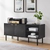 Crosley 54" Brody Record Storage Sideboard Black: Oak Wood Grain, Brass Handles, Cable Management